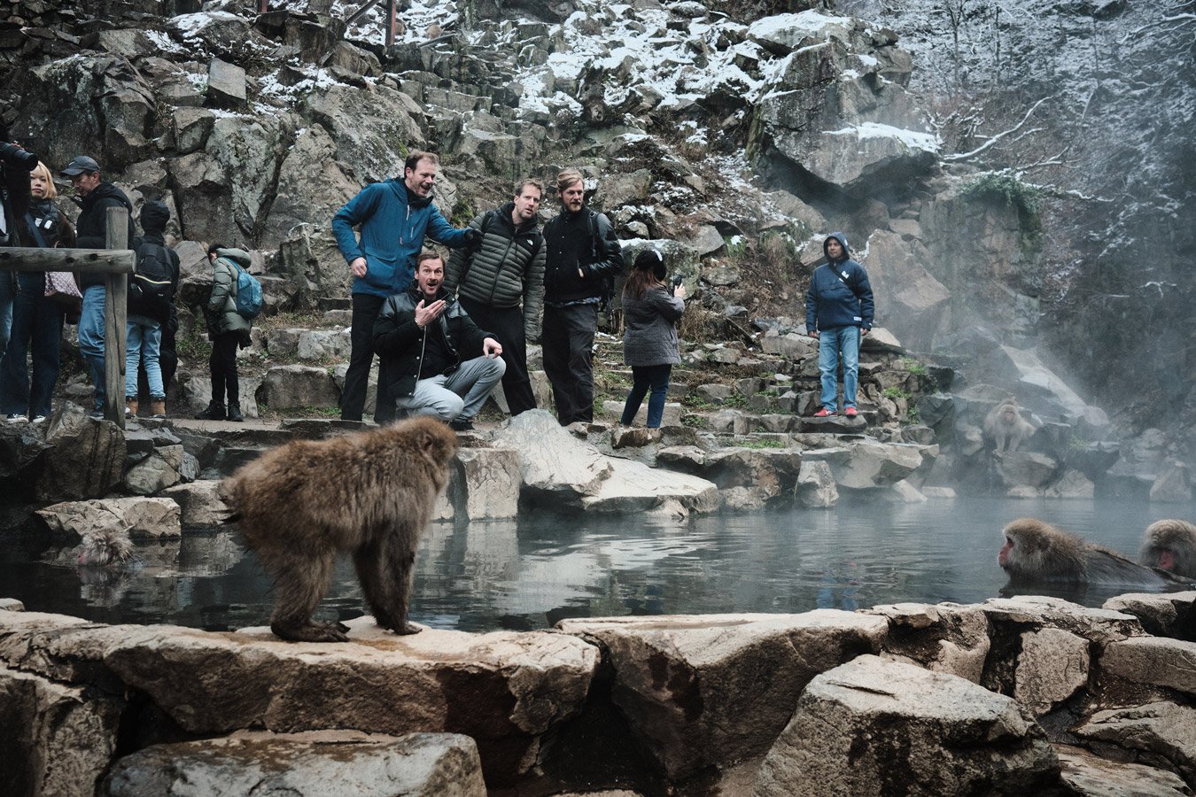 Besides being law-abiding, Japanese are also very nice. Really, really nice, in fact. When I'm about to walk out of the elevator in our hotel near Nagano, the lady from the reception desk is waiting to get in. She sees me standing there, startles, bows quickly and then squeezes out a smile with a face as if she was on the toilet after having eaten spoilt oysters. It really is a kind of severe 'laugh-birth'. She squeezes so hard that, had it not been a laugh but real childbirth, the gynaecologist would probably have gone in search of a forceps. I am impressed by her dedication and reciprocate her kindness with a typically subdued Dutch smile.
