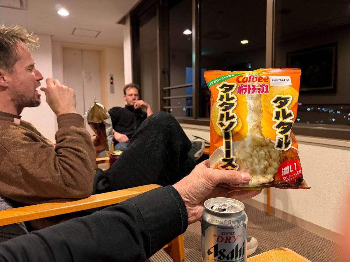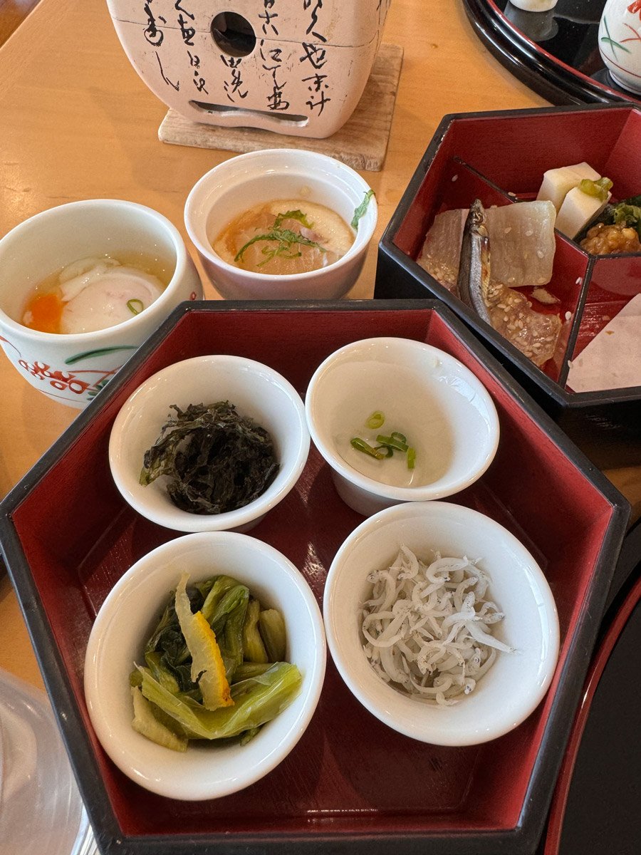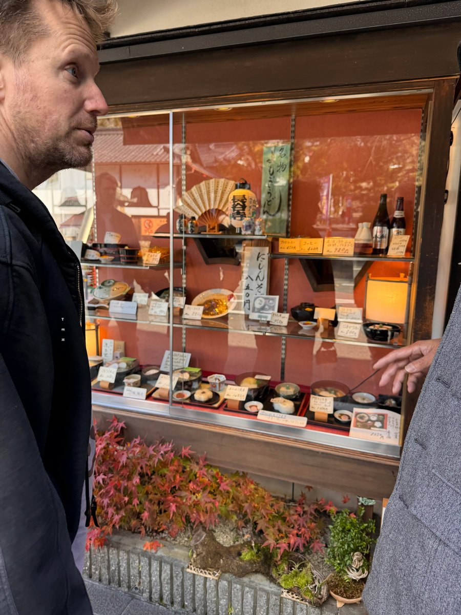 A real delicacy! Ten seconds after swallowing it, I finally realize what our guide has been trying to tell me all along: it’s whale. Our Japanese guide, a super nice and overly correct 64-year-old man, is sometimes a bit hard to understand. He speaks like a YouTube video that keeps faltering because of the poor WiFi; it’s like he has to download new data every few seconds. If he had had a good WiFi connection in his language centre, I would have been spared this bit of animal cruelty. On the tablet that shows the menu, I also clicked on something that Google Lens translates as cod. You can’t go wrong with that, right? But in the bowl is something that looks like cooked-through jumper cables. To me, this is more odd than cod! It's offal, a trachea or something. I need to be sharp this week. Don’t lose focus or next thing you know, there’ll be a raw electric eel on your plate in front of you.
