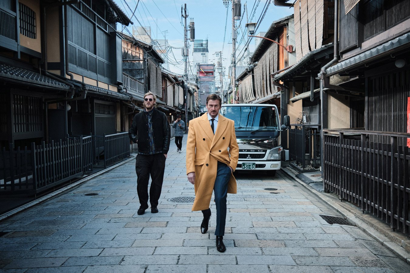 For the Winter 2024 campaign, Floris travelled to Japan. He walked through the frame while stunning pictures of the landscape were being taken, accidentally ate a piece of whale, and spilt soy sauce on his white shirt. The most beautiful photo was taken beneath a red Japanese maple tree.
