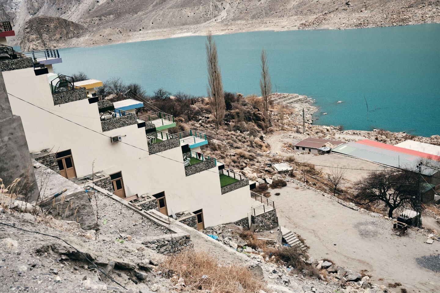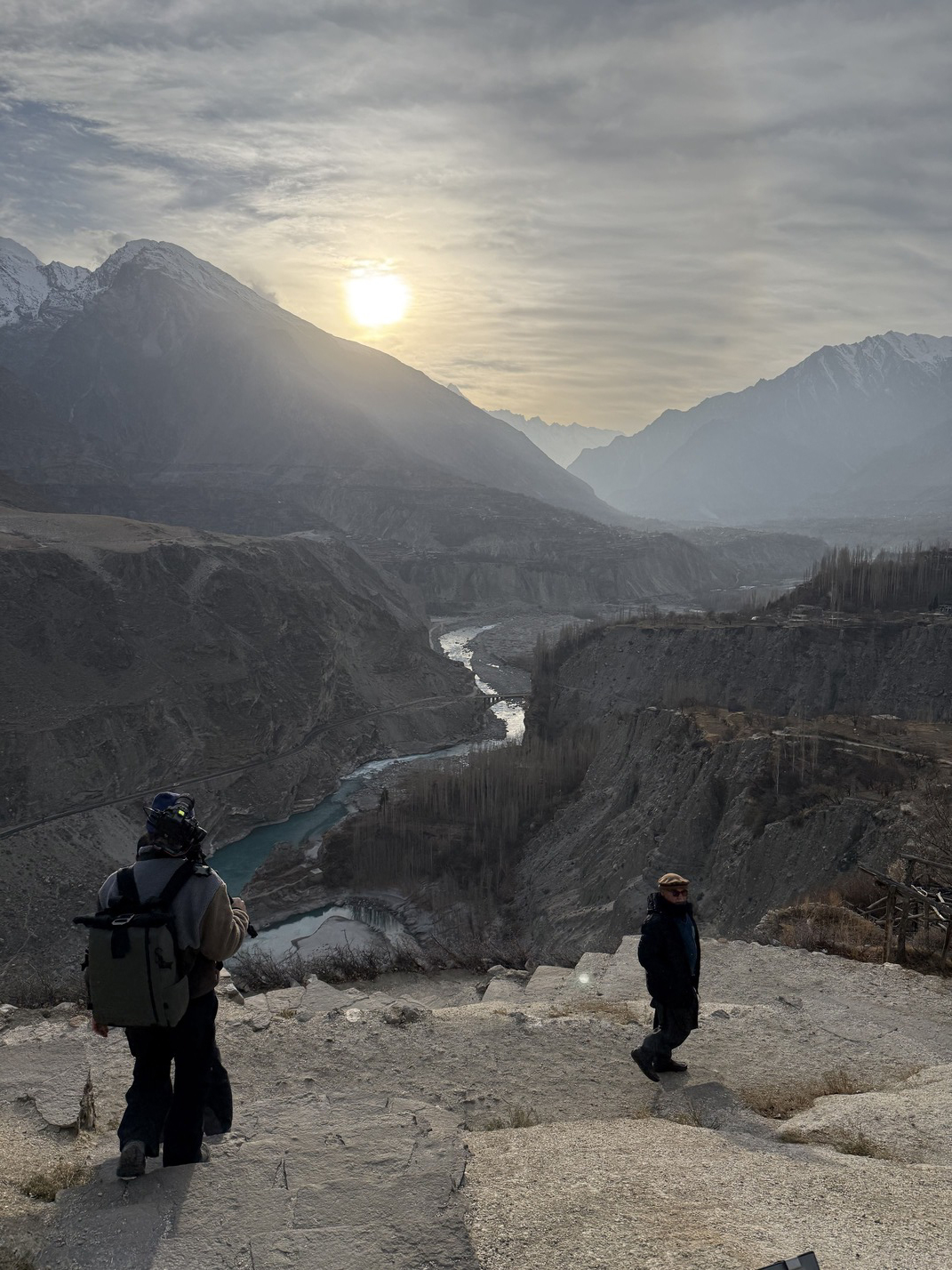At night, we drive over narrow mountain passes with dizzyingly steep slopes. Two roadblocks due to construction cost us another hour and a half. After two sleepless nights, we finally arrive in the Hunza Valley.