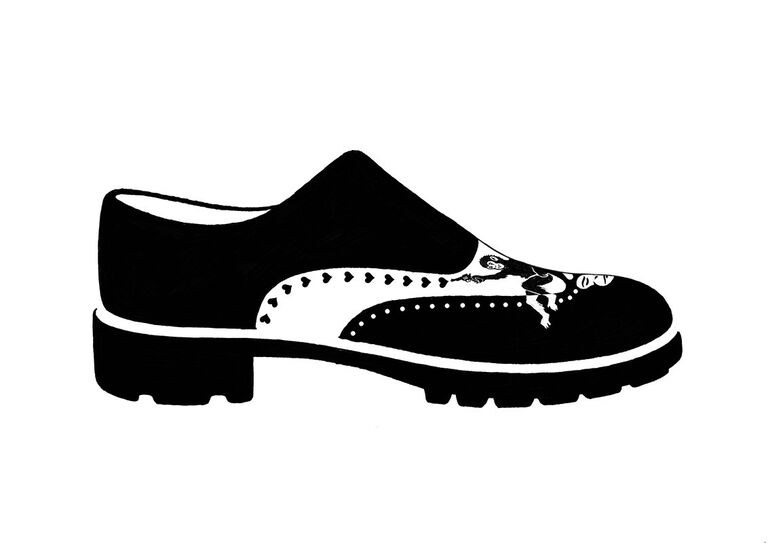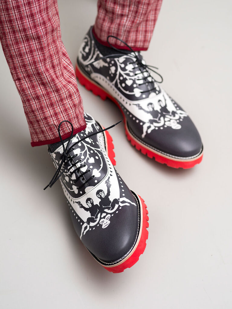 Floris: “In 2016, I met Berlin-based illustrator Bendix Bauer. Bendix works for various fashion companies, top brands, and international media. We thought it would be fun to start something together, and see where it takes us. We gave Bendix complete carte blanche, and he got to work. The result of that are these 'Monkey business' shoes. A black and white gangster shoe that style-wise leans towards the 50s. A bit of Al Capone, but with monkeys.