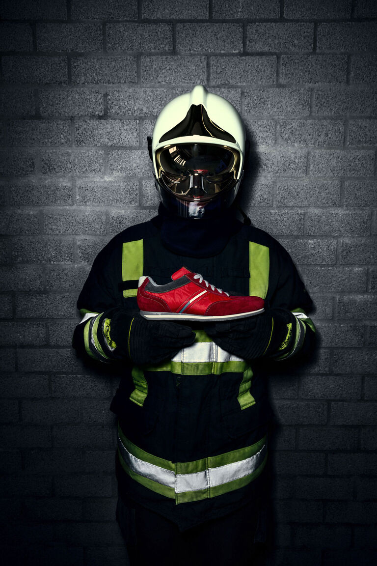 The Dutch Fire Department said the following about this sneaker: "The Dutch Fire Department is pleased with the ode to all our firemen and women. 'Additionally, we're becoming increasingly innovative within the fire department', president Stephan Wevers said. 'On the subjects of firefighting, aid and assistance, and prevention, we need to keep up to execute our social duty successfully. The fireman sneaker that Van Bommel has developed is a beautiful and tongue-in-cheek ode to our firefighters. Aside from the seriousness that comes with our profession, we need to reserve room for fantasy and experimentation. We're hoping these fireman shoes will support us in that effort. Furthermore, we love to lend our name to the cause of this Floris van Bommel campaign: the Dutch Burn Victim Foundation."