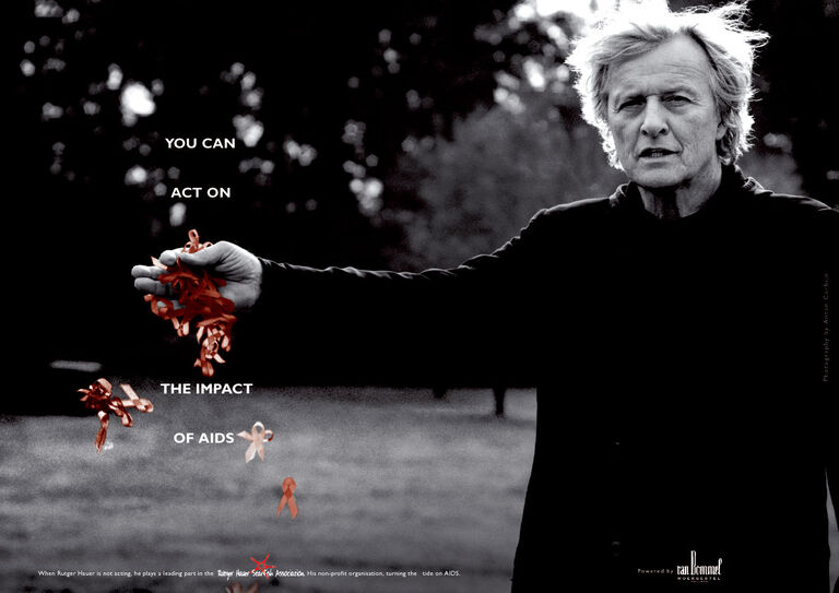 To introduce the campaign we organised a press event in a small venue at the Tuschinski theatre in Amsterdam. Rutger wasn't exactly a public person at the time, and never gave interviews. He mainly lived on film sets abroad. That made our press event extra 'hot'. It was one of those times where photographers literally climbed on top of one another to get a perfect shot of him.