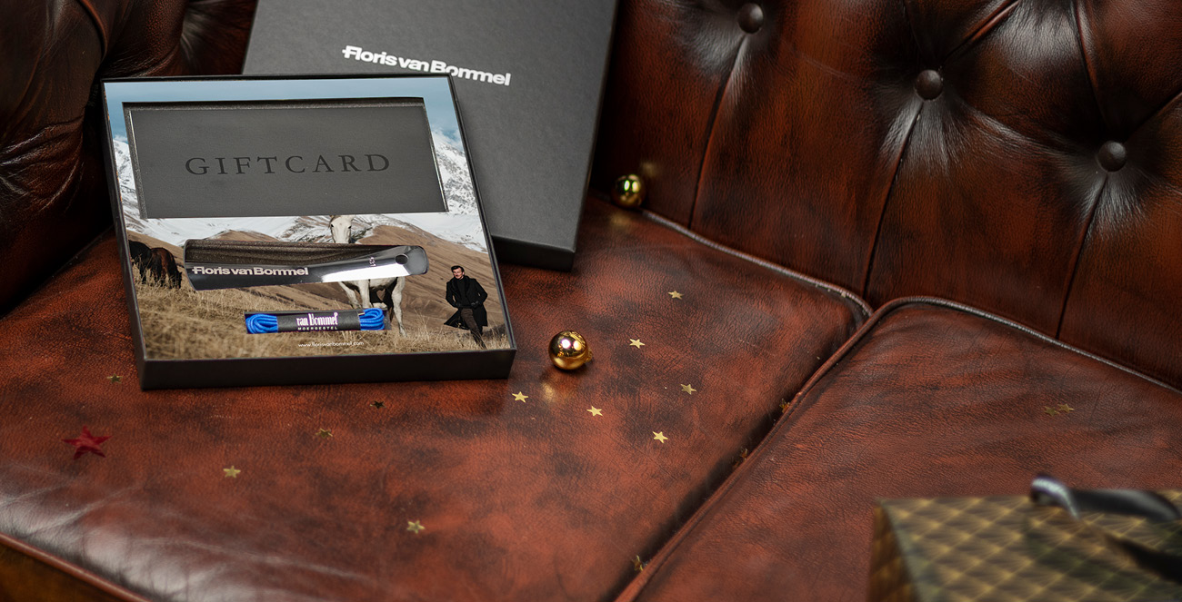 Our gift card box with the Floris van Bommel theme. Gift cards can be redeemed in the Floris van Bommel online shop and brandstore.