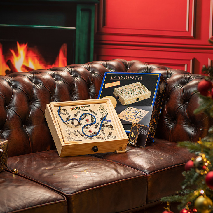 All by my own fair hand: ‘Floris van Bommel and the raiders of the floppy heel’! A spectacular game with a metal marble… Let’s play!” Labyrinth comes in festive packaging including a card with a note by Floris on why he has chosen this gift.