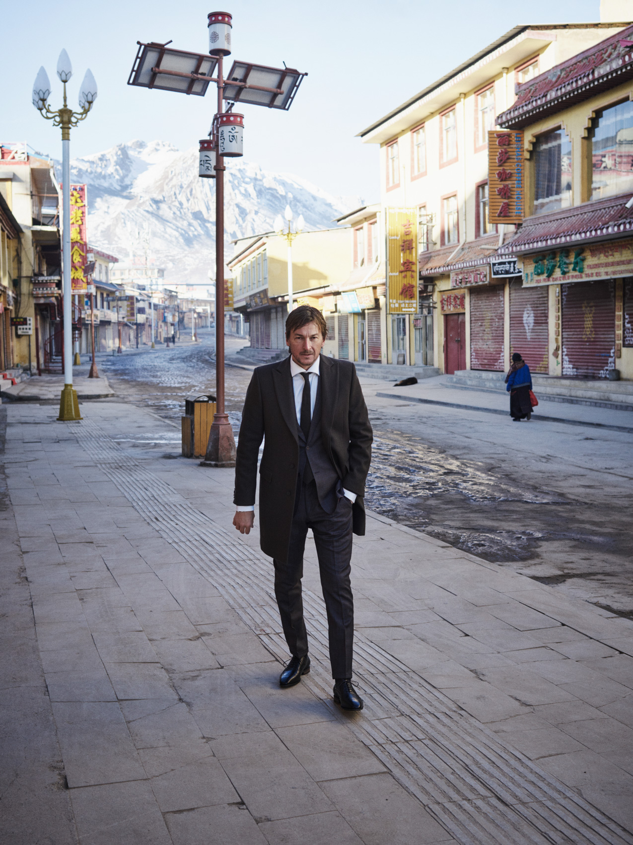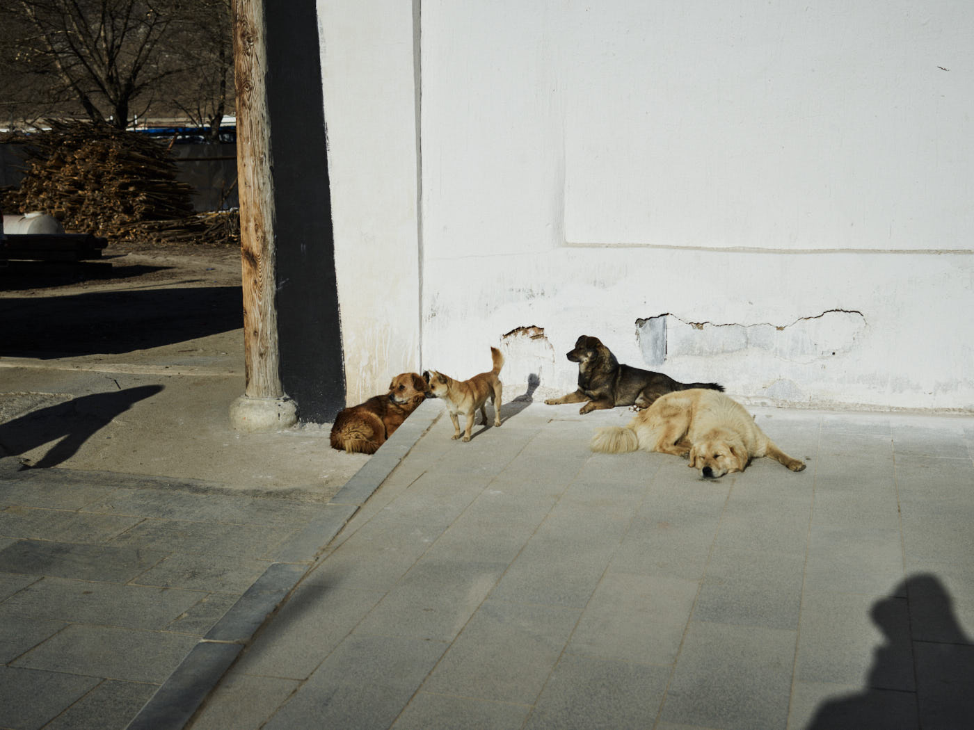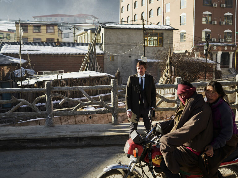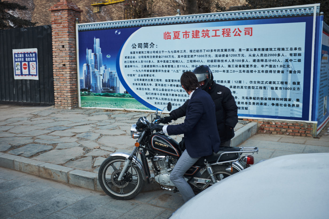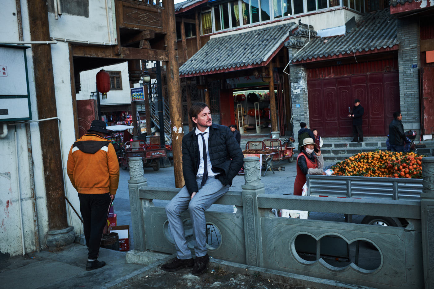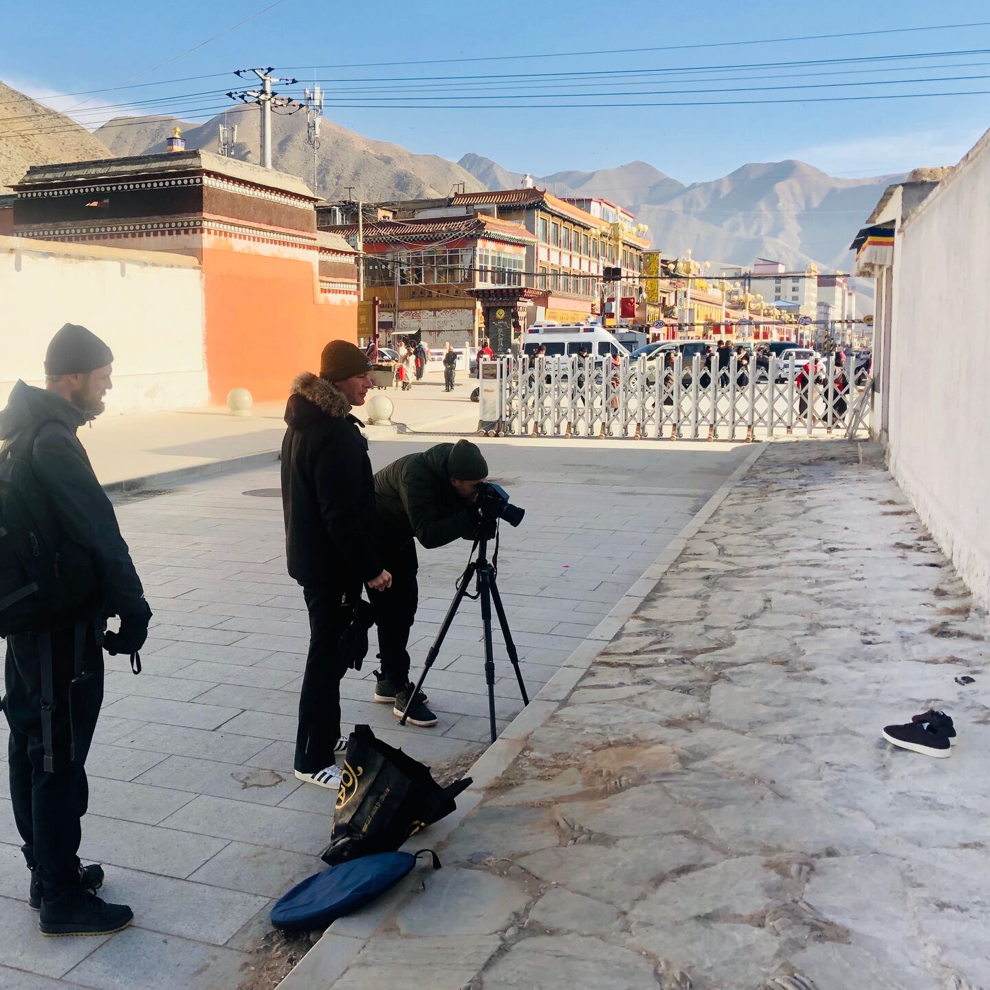De foto die we uiteindelijk als advertentie hebben gebruikt is bij het krieken van de dag genomen in Lansu. Dit dorpje ligt volgens de Chinezen in China, maar volgens de bewoners van het dorpje zelf in Tibet. Ik had het idee dat ik op een filmset voor een Chinese/Tibetaanse western rondliep. Geen spaghetti western, maar een bami western. Het leuke van onze manier van werken is dat we nooit weten waar we dé foto gaan maken. We plannen zo goed mogelijk een roadtrip en dan is het terplekke 100% improviseren. We laten de magische momentjes op ons afkomen. Deze lege straat met in de achtergrond een berg die lekker van het ochtendzonnetje aan het genieten was is er zo eentje.