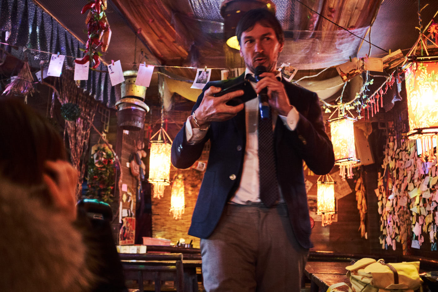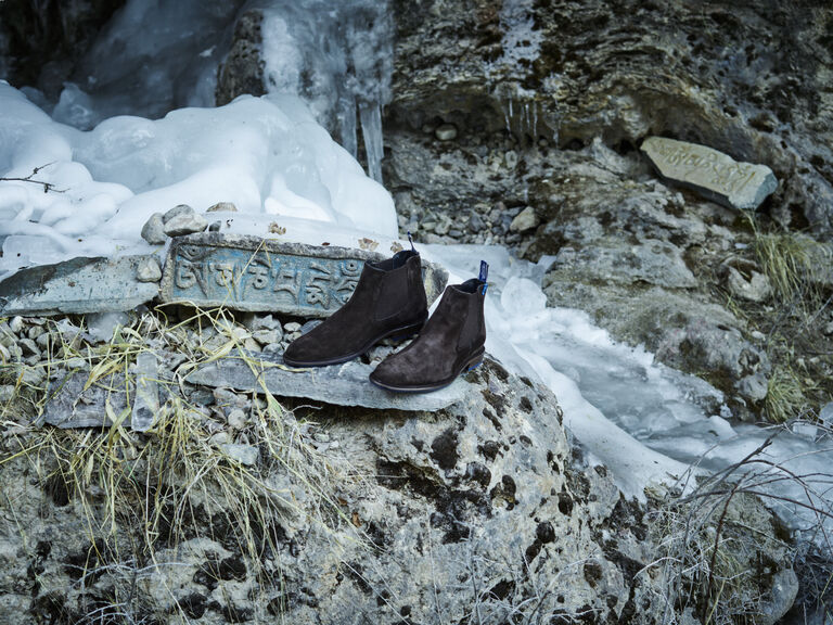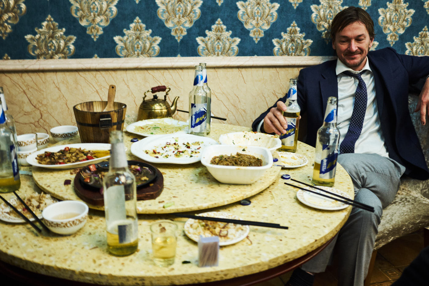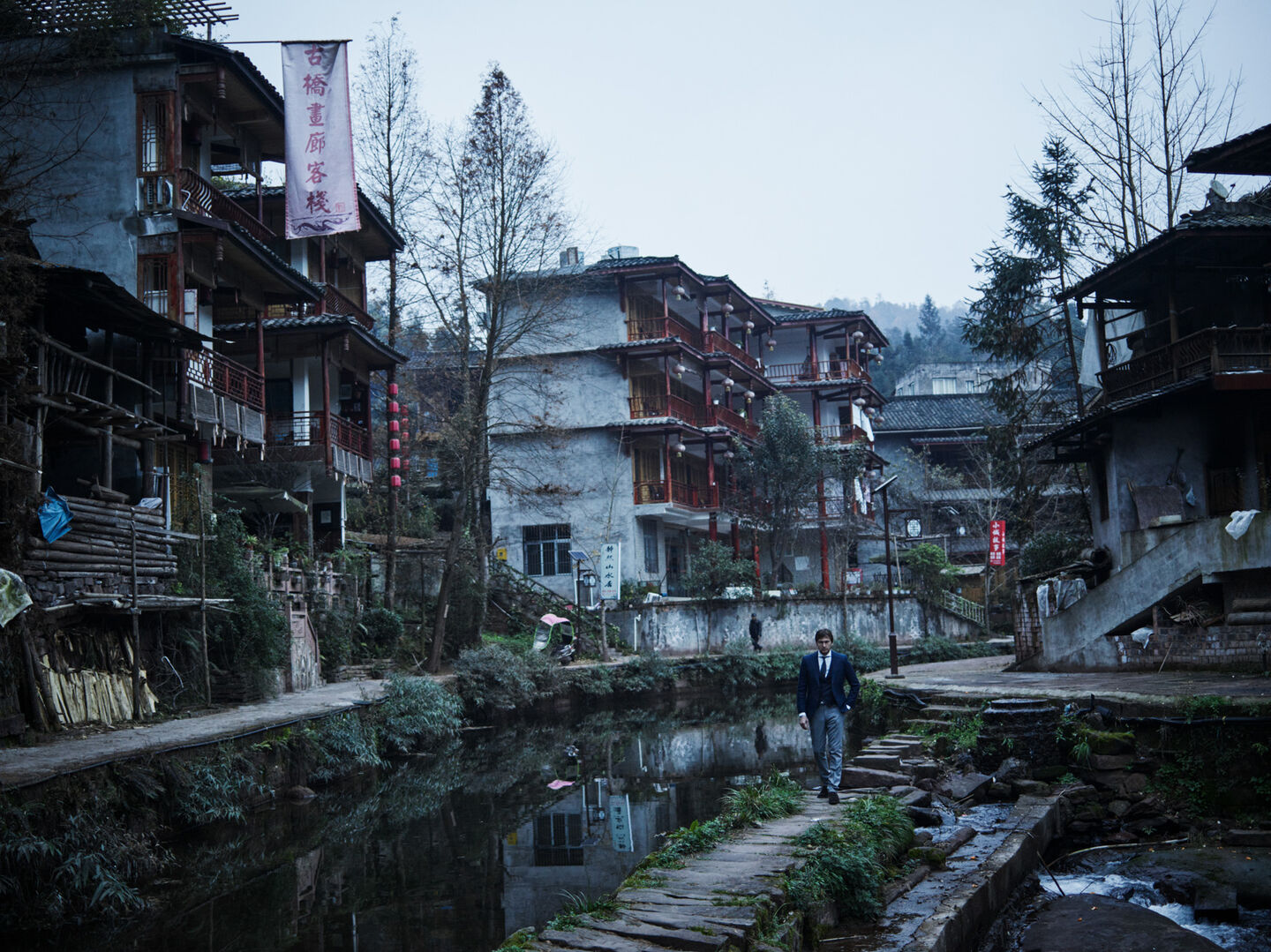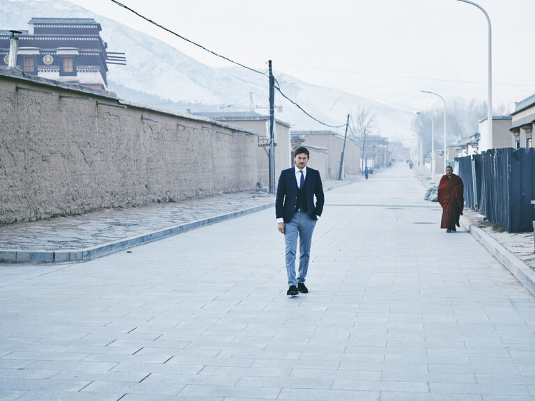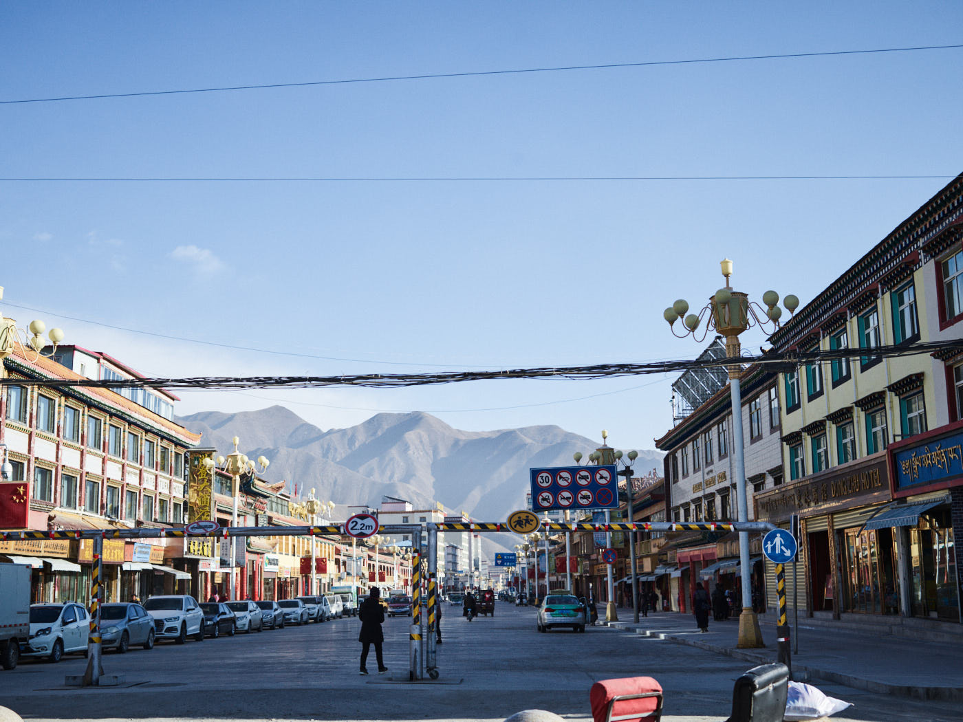 De foto die we uiteindelijk als advertentie hebben gebruikt is bij het krieken van de dag genomen in Lansu. Dit dorpje ligt volgens de Chinezen in China, maar volgens de bewoners van het dorpje zelf in Tibet. Ik had het idee dat ik op een filmset voor een Chinese/Tibetaanse western rondliep. Geen spaghetti western, maar een bami western. Het leuke van onze manier van werken is dat we nooit weten waar we dé foto gaan maken. We plannen zo goed mogelijk een roadtrip en dan is het terplekke 100% improviseren. We laten de magische momentjes op ons afkomen. Deze lege straat met in de achtergrond een berg die lekker van het ochtendzonnetje aan het genieten was is er zo eentje.