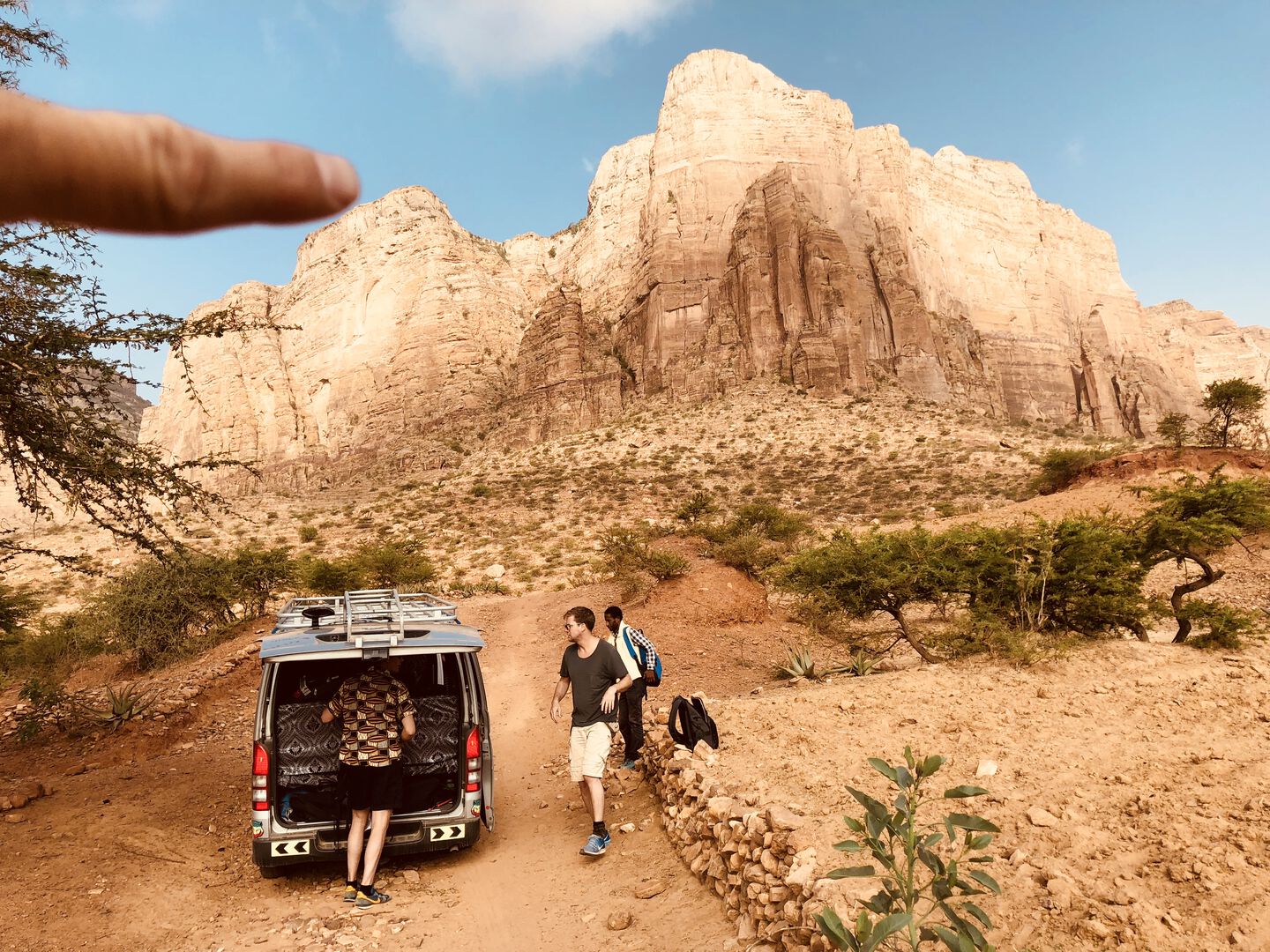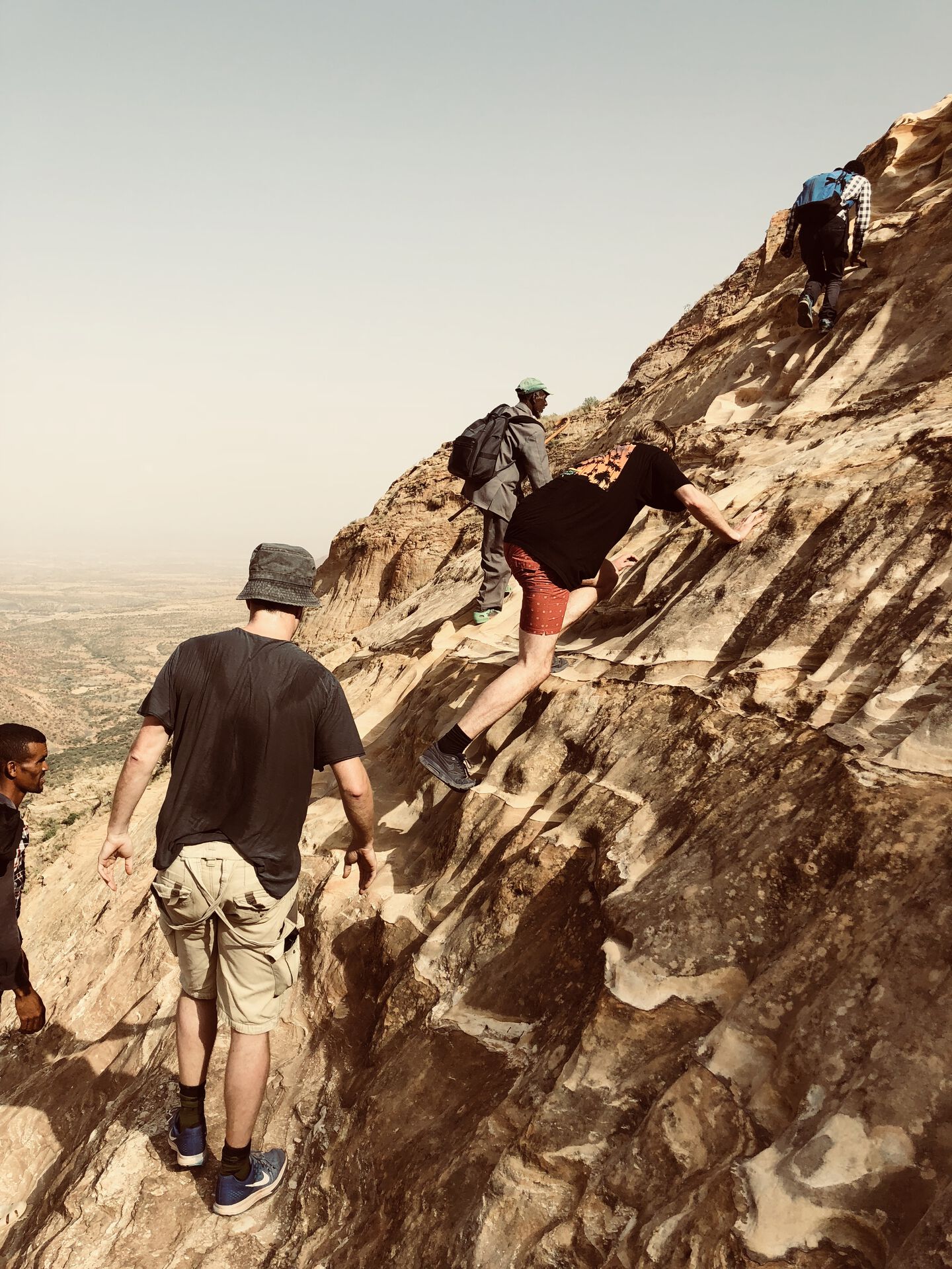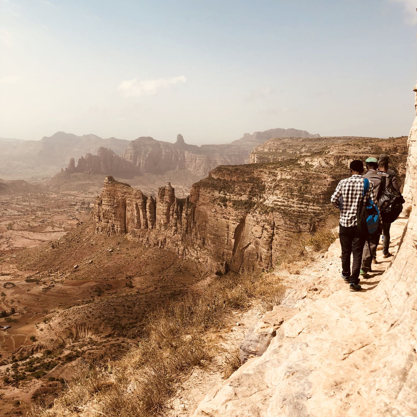 31 mei, Tigray Ethiopië. Onze lokale berggids vertelt ons, aan het begin van onze bergtocht naar een mooi uitzichtpunt, dat we op ‘medium’ hike gaan. Al snel komen we er achter dat er niks medium is aan deze hike. We klimmen een uur lang langs steile afgronden, tussen kloven en over losse stenen. Maar, de beloning is gróót. Het uitzicht en de grootsheid van het landschap was krankzinnig.
