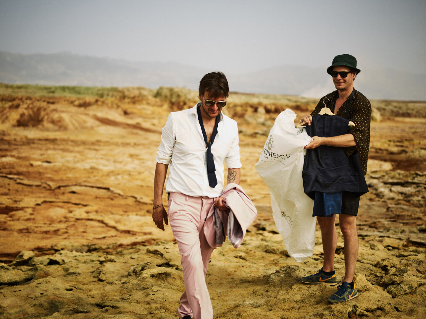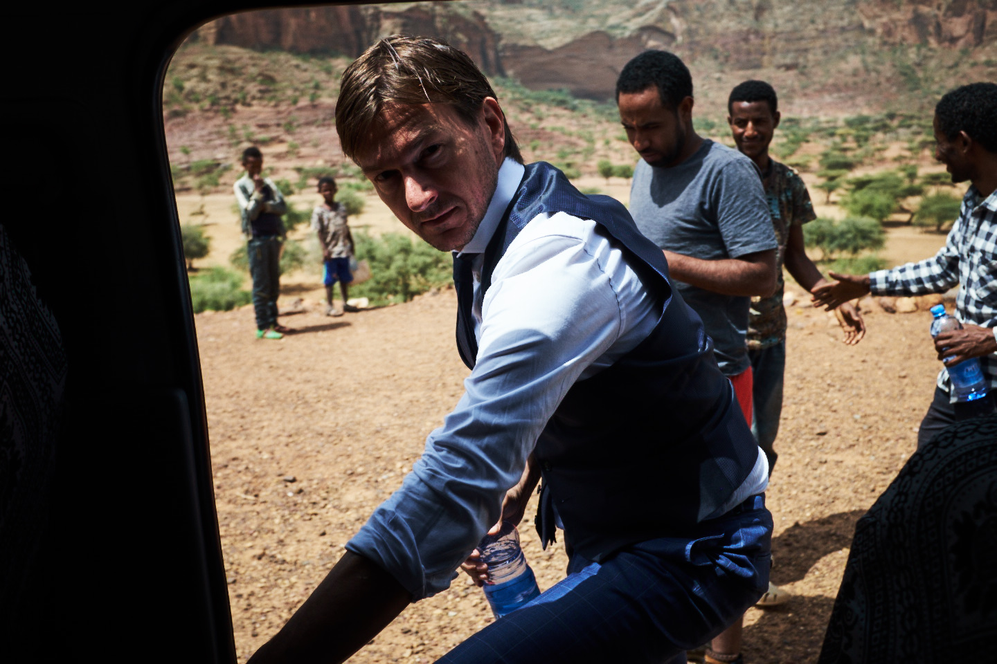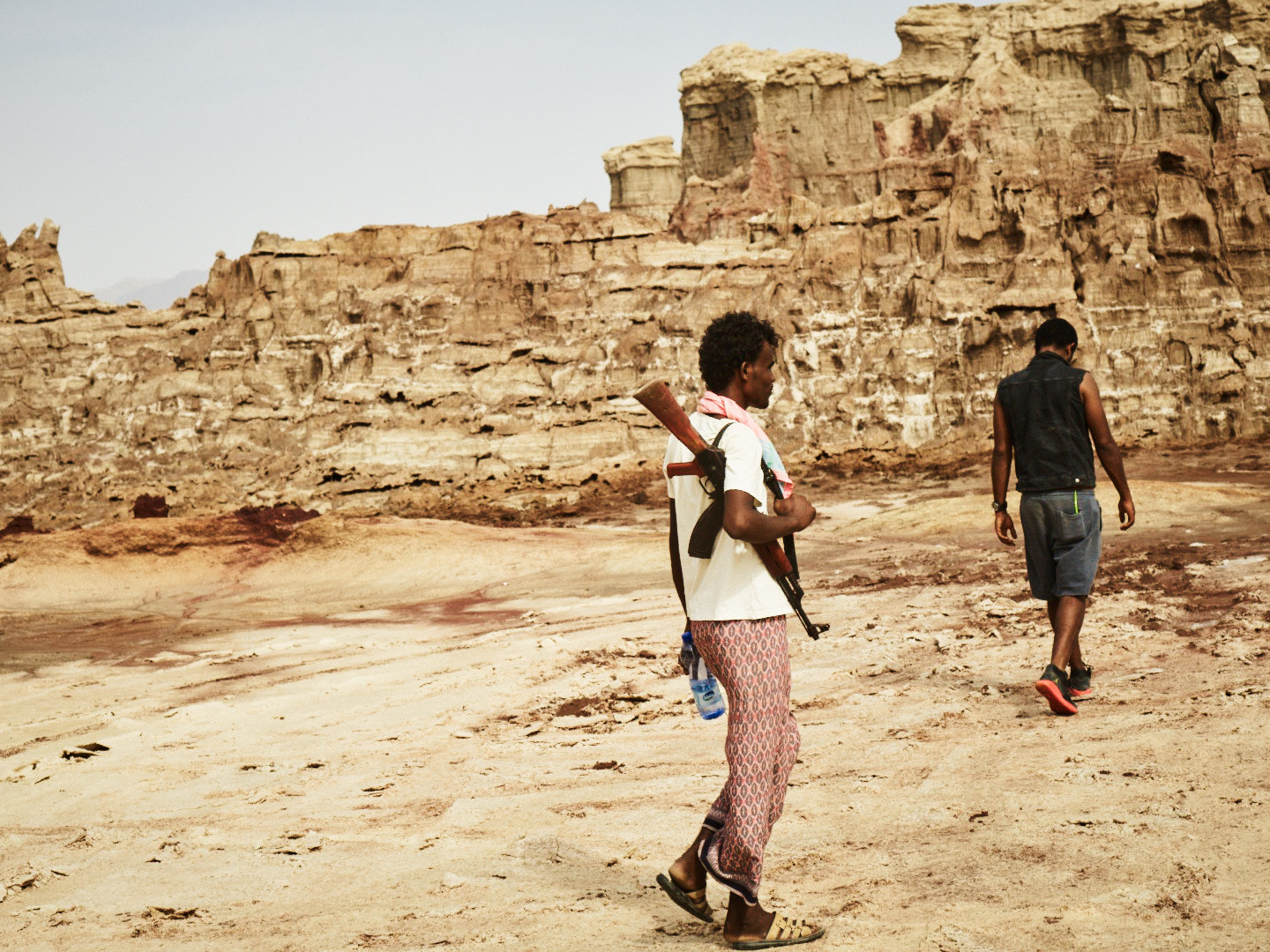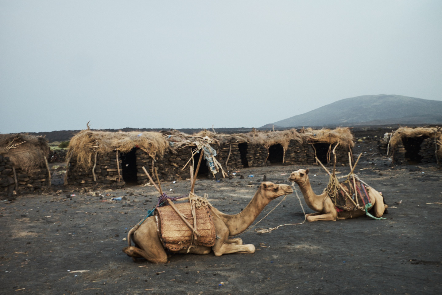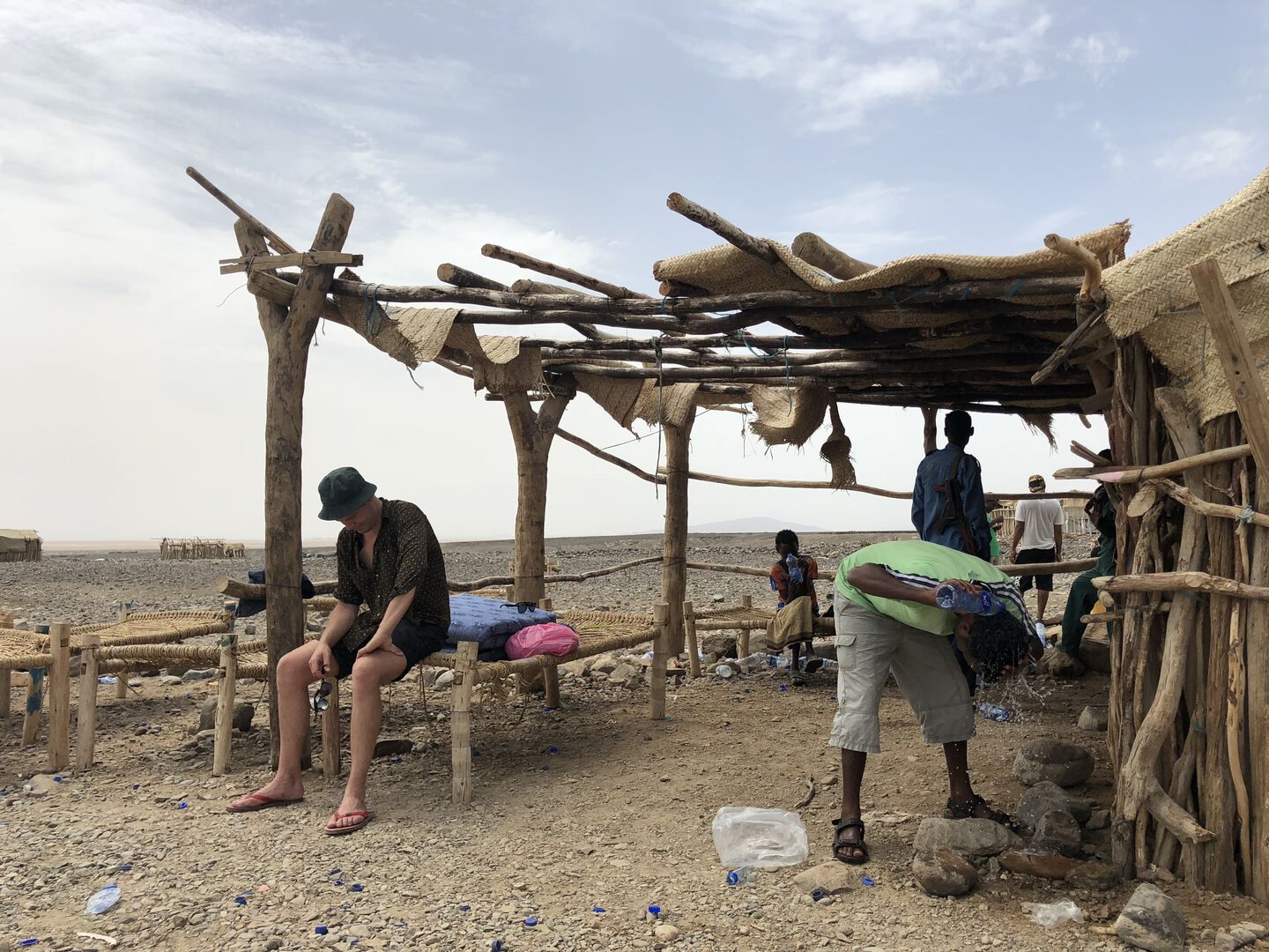 2 juni, Afar Ethiopië. We rijden een paar uur en belanden nu echt volle bak in de hel op aarde. We stappen uit in een soort woestijnachtig landschap met helemaal niks. Het is minstens 46 graden maar het waait als een gek. Zeker windkracht 7. Er is nergens verkoeling. Het drinkwater is gloeiend heet. Onze accommodatie is een hut gemaakt van palen en stro. Die hut is alleen om in te koken. Slapen doen we buiten op gammele houten bedjes. Onze gids heeft net verteld dat de lokale Afar tribe de meest agressieve stam is in heel Afrika. ‘Very agressive yes, but no problem, we sleep outside.’ Het is de bedoeling dat we hier twee nachten blijven. Binnen twee minuten was besloten dat dat niet zo’n goed idee was. We hebben alle locaties en shoots in één dag gepropt en zijn na één overnachting met piepende banden vertrokken.