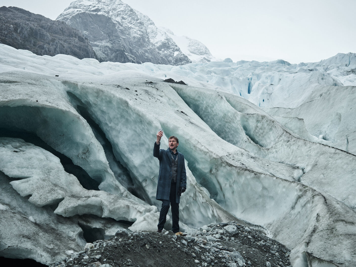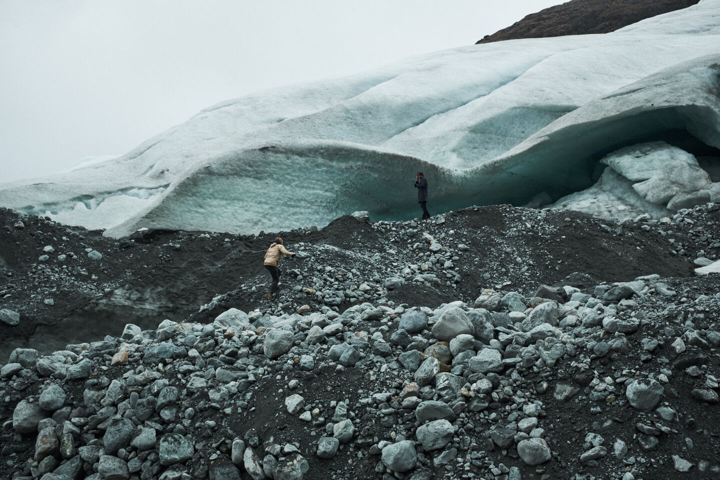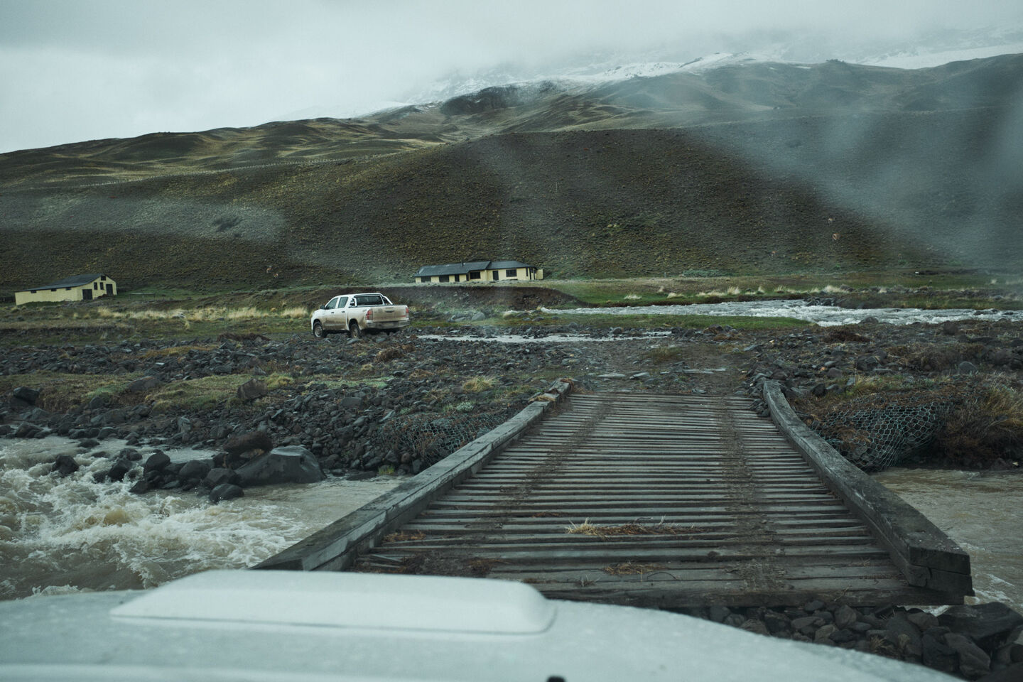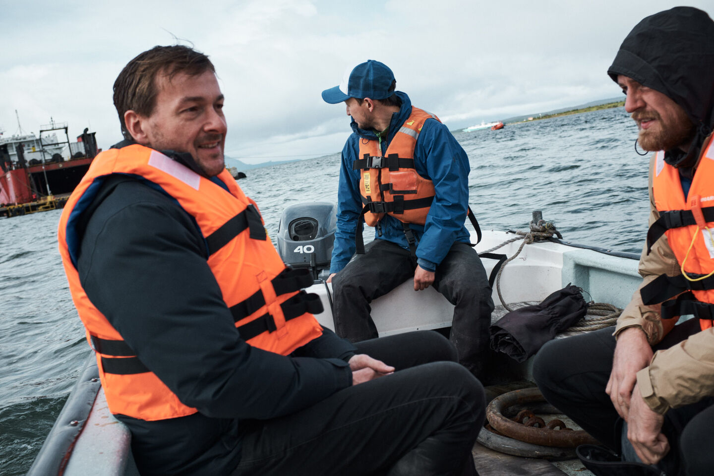 Als eerste fotolocatie hadden we gekozen voor een gletsjer midden tussen de fjorden van Chili. Om er te komen moesten we vanaf Puerto Natales nog 9 uur de wildernis in reizen. Eerst een stuk lopen, dan een boot, daarna een stukje met de auto, dan weer een boot, de eerste hike, nog een boot, een tweede hike en dan de laatste boot, die ons afzet op de basiskampboot.