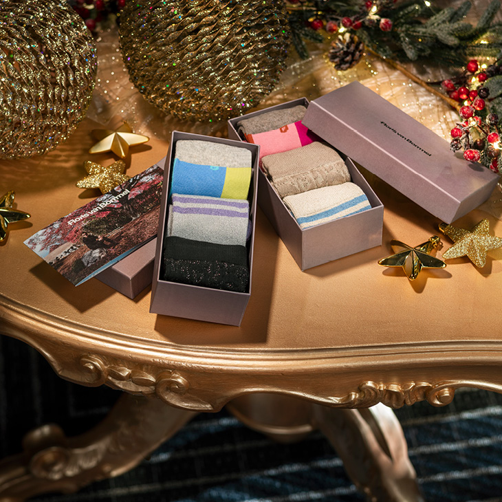Drie paar Floris van Bommel damessokken in een mooie giftbox. Een prachtig cadeau om te geven en om te krijgen!