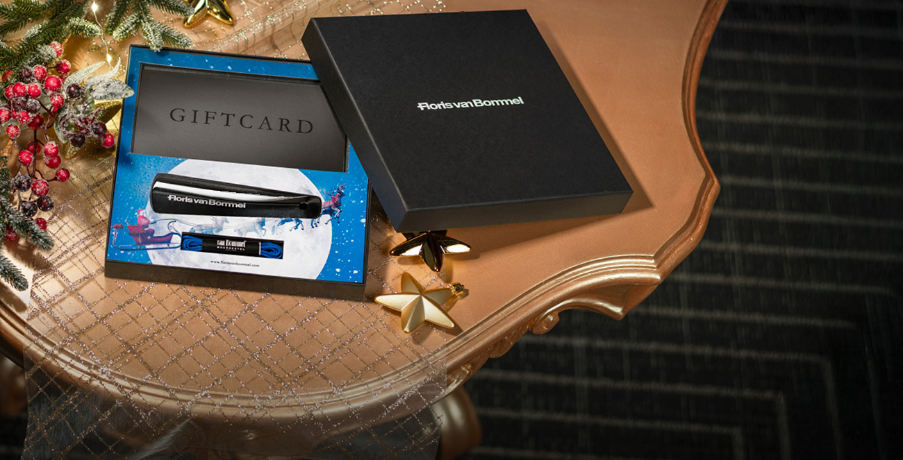 Deze giftcard-box is in Floris van Bommel thema. De giftcard is te verzilveren in de Floris van Bommel webshop en brandstores.