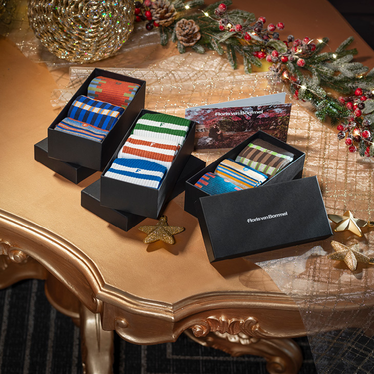 Drie paar Floris van Bommel herensokken in een mooie giftbox. Een prachtig cadeau om te geven en om te krijgen!