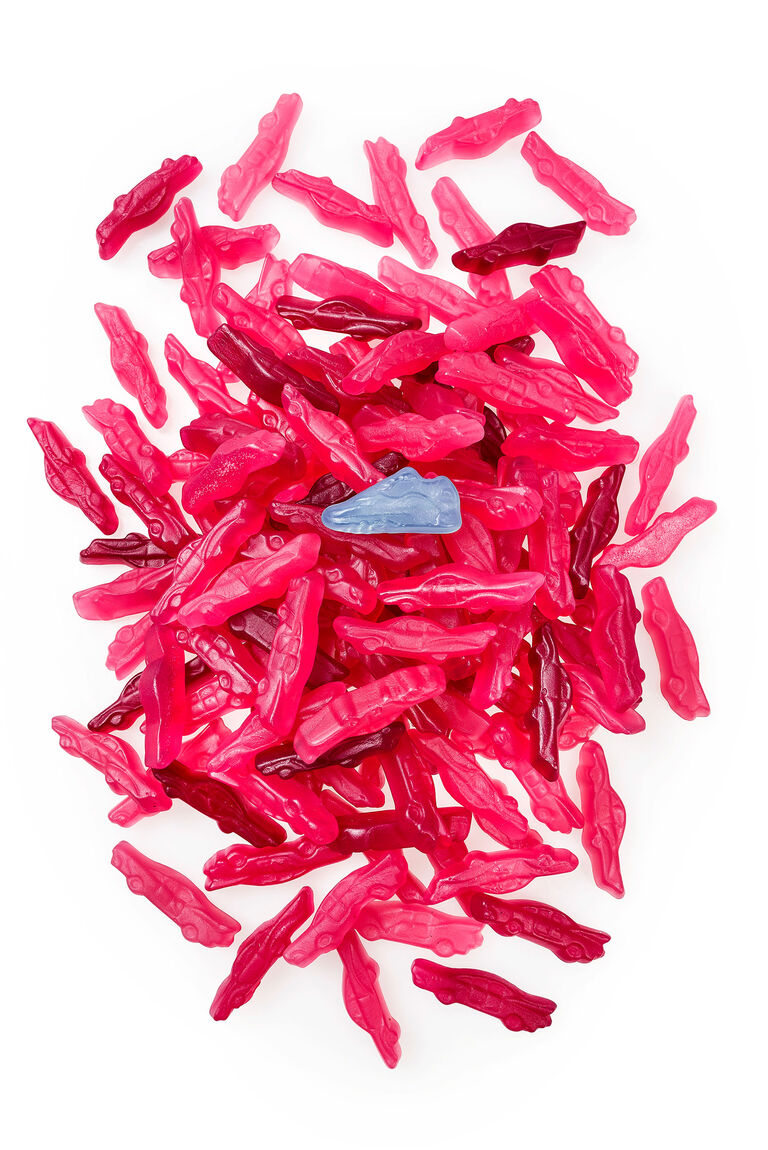 “Hé hé. Eindelijk had ik ook eens een keer een snoepreisje! In de snoepfabriek van Autodrop mocht ik net zo lang proeven totdat we een nieuwe smaak hadden voor een blauw sneakersnoepje. Ik heb uiteindelijk gekozen voor.. Ananas! Ik kreeg er een keiharde retro opvlieger van, rechtstreeks naar ’t Winkeltje, de snoepwinkel uit mijn jeugd. Ananas is niet persé een smaak die je associeert met de kleur blauw, maar naast Gargamel weet toch niemand hoe blauw echt smaakt.”