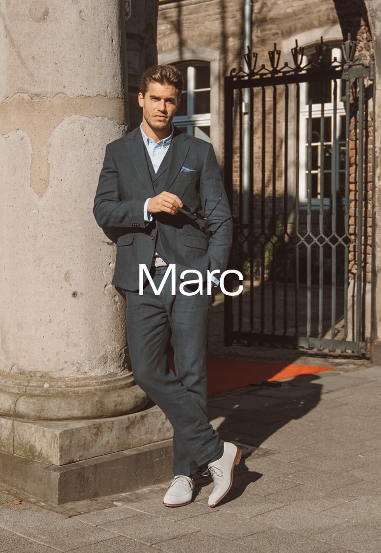 Marc laat zien hoe hij een suède loafer, twee nette veterschoenen van lichtbruine en lichtgrijs geprint suède en de ‘De Zager’ uit onze zomercollectie stijlt.